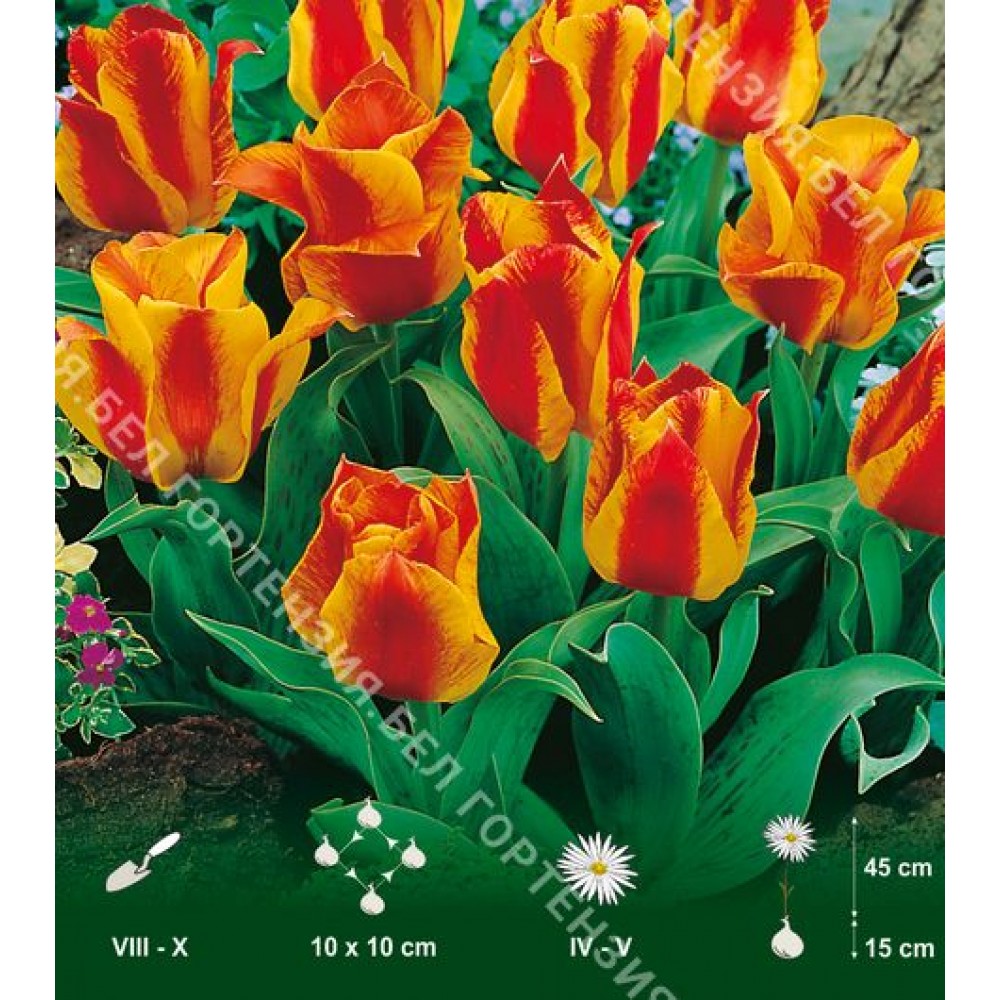 Тюльпаны Грейга зацветают одними из самых ранних. Эти низкорослые тюльпаны украсят клумбу, альпинарий, кашпо. Помимо крупных бокалов цветков интересна и окраска их листьев. Листья зеленые с узором и полосками фиолетового цвета. Тюльпан Чайковский - сорт с яркими нарядными цветками красно-желтой окраски. Украсит и клумбу, и вазон, и альпийскую горку.