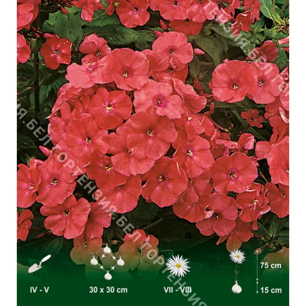 Флокс Орандж Перфекшн – сорт с крупными, метельчатыми соцветиями красно-оранжевого цвета с маленьким розовым глазком в центре цветка. Обладает приятным ароматом. Флоксы весьма популярные красивоцветущие садовые многолетники. Поэтому посадка нескольких кустиков в любой цветник добавит ему разнообразия красок и пышного цветения. Предпочитают солнечные участки, защищенные от ветра, но неплохо чувствуют себя и в полутени. Хорошо растут на легких суглинистых умеренно удобренных почвах от слабокислой до нейтральной реакции. В период закладки соцветий (май – июнь) нуждаются в хорошем увлажнении почвы. Для того, чтобы флоксы цвели крупными соцветиями, на кусте оставляют не более 6-7 стеблей. Зимуют без укрытия.