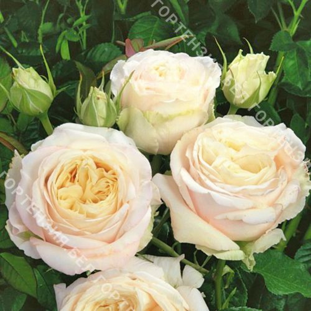Сорт выведен в питомнике Тантау (Германия). Кремово-белая чайно-гибридная роза с крупными, густомахровыми цветками в старинном стиле. Цветки появляются в небольших соцветиях, долго не увядают и чудесно контрастируют с темно-зеленой блестящей листвой. Куст округлый, ветвистый. Классический аромат розового масла.